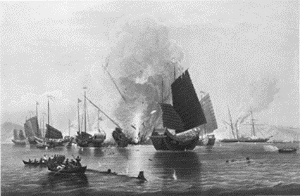 Image: https://en.wikipedia.org/wiki/First_Opium_War#/media/File:Destroying_Chinese_war_junks,_by_E._Duncan_(1843).jpg